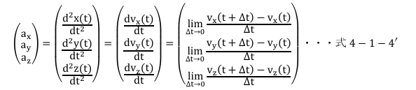と定義され、また、各時刻の加速度は各時刻の速度の成分vx(t)、vy(t)、vz(t)を用いて表せば